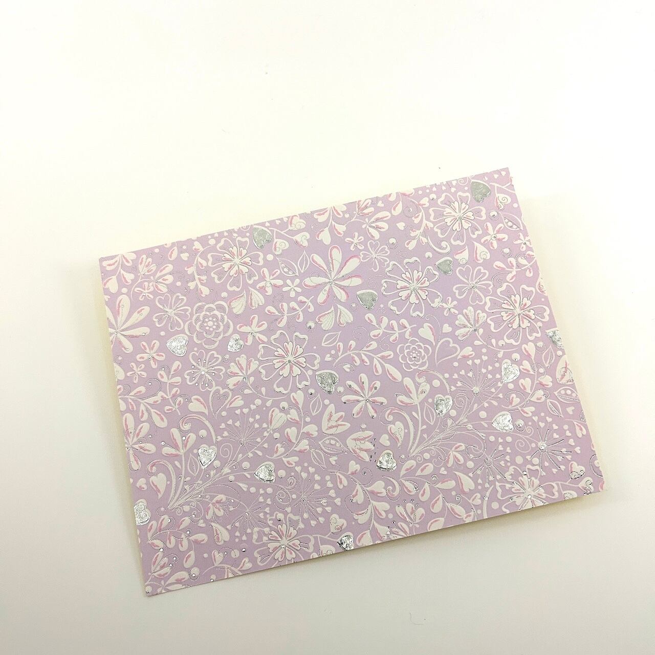 エンボス加工した紙にシルバーの箔押しがアクセントの、高品質で存在感のある仕上がりのフラワーモチーフ柄です。シンプルなデザインながら立体的な印刷が施されたモチーフは奥ゆかしく、使い勝手の良い一品に仕上がりました。