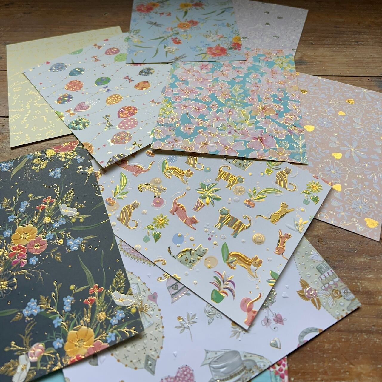 シートのまま貼るだけでなく、カットして細かく異なるデザインを組み合わせてコラージュのように仕上げたり、キュアパンチをはじめとするクラフトパンチで小さなワンポイントとして楽しんだり、装飾紙の持つ繊細なデザインが、手元で新たな表情を見せてくれます。