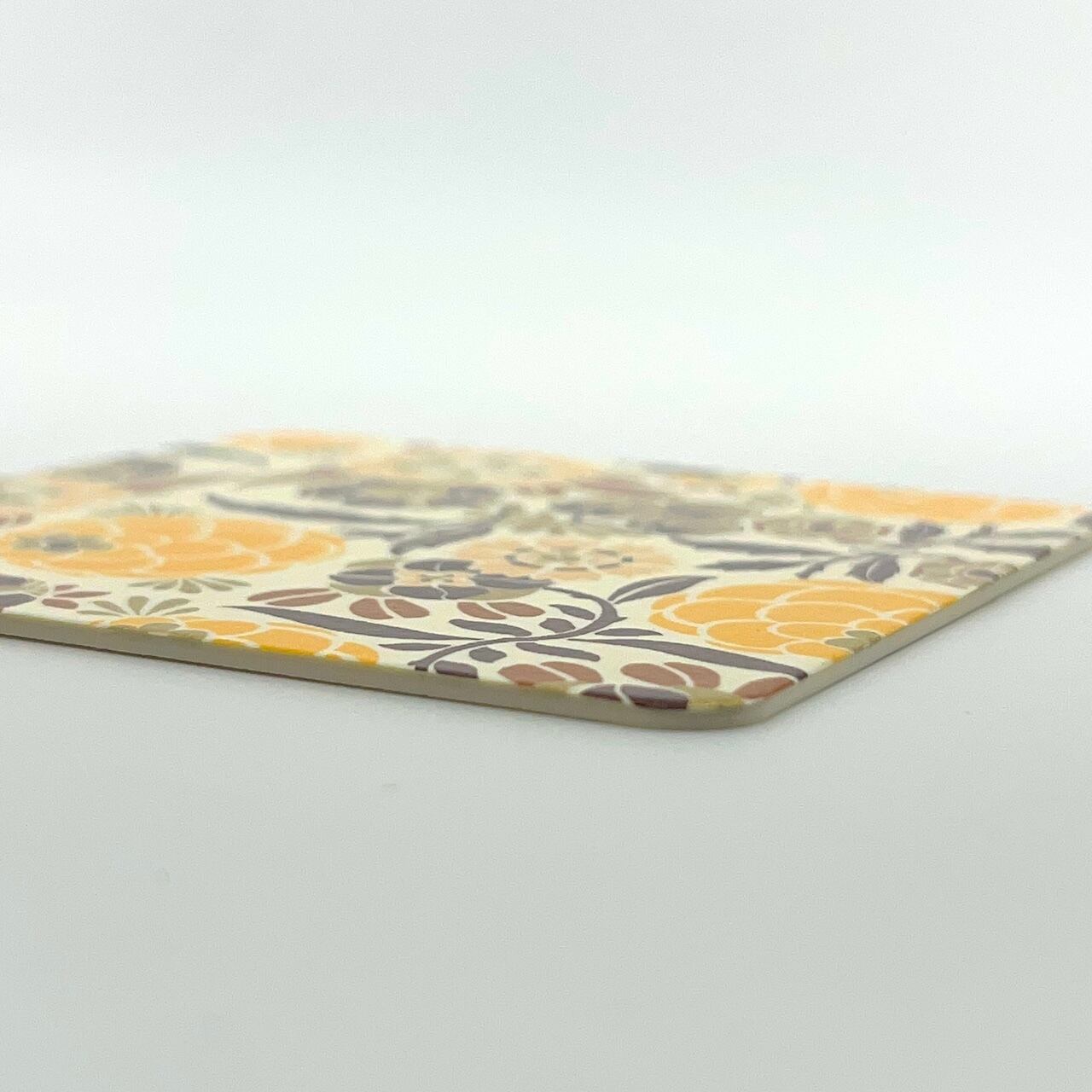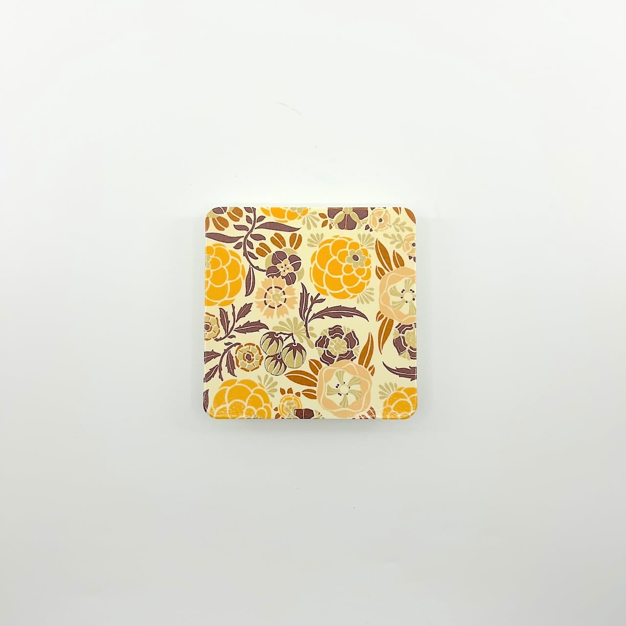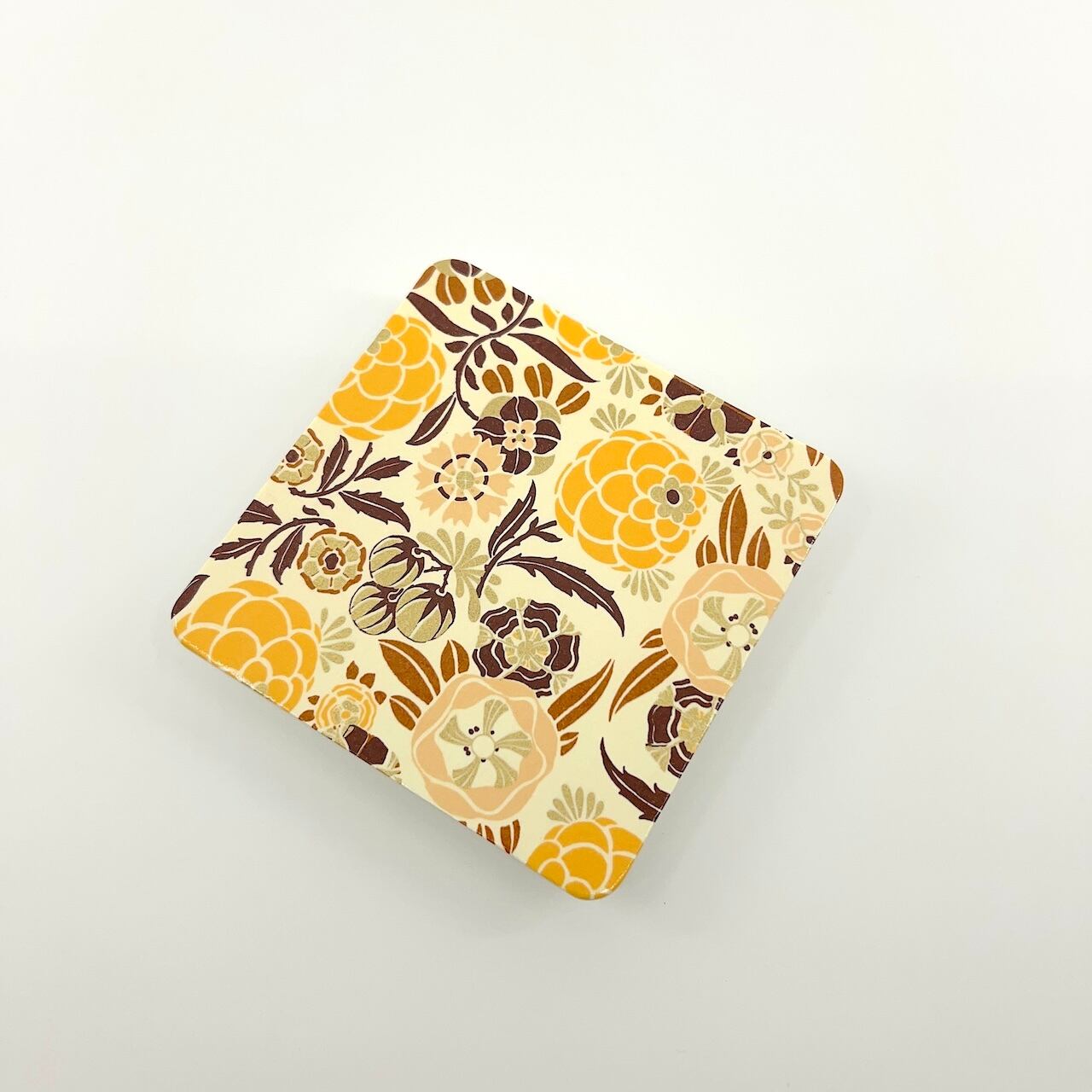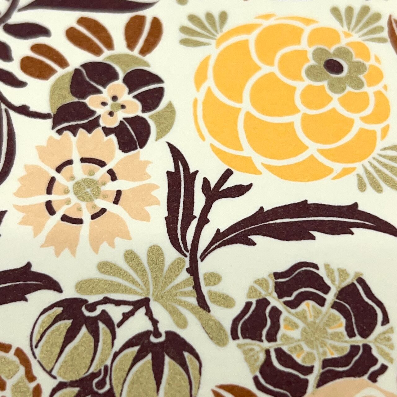 落ち着いたイエローとブラウンを基調にした花柄。あたたかみのあるトーンが心地よく、どんな空間にも穏やかに調和します。