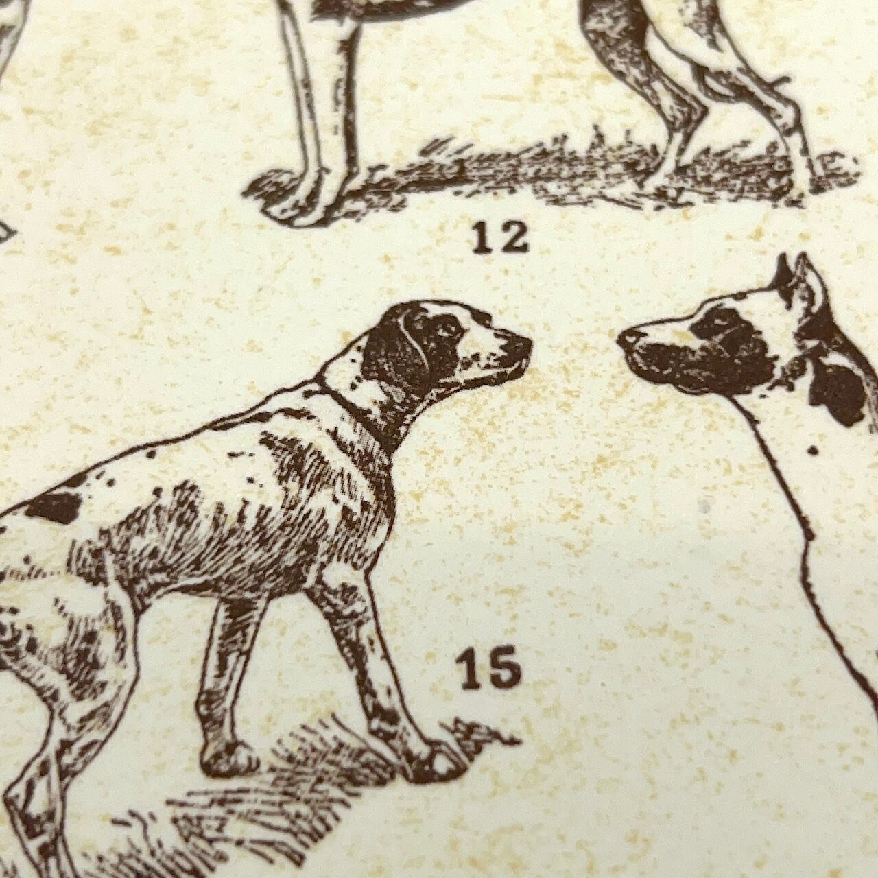 繊細な線画でさまざまな犬種を描いたクラシカルなデザイン。知的な雰囲気と穏やかな世界観が調和し、上品な可愛らしさを感じさせます。
