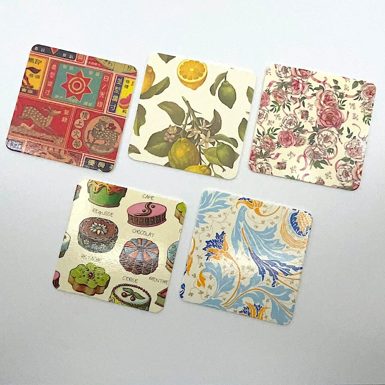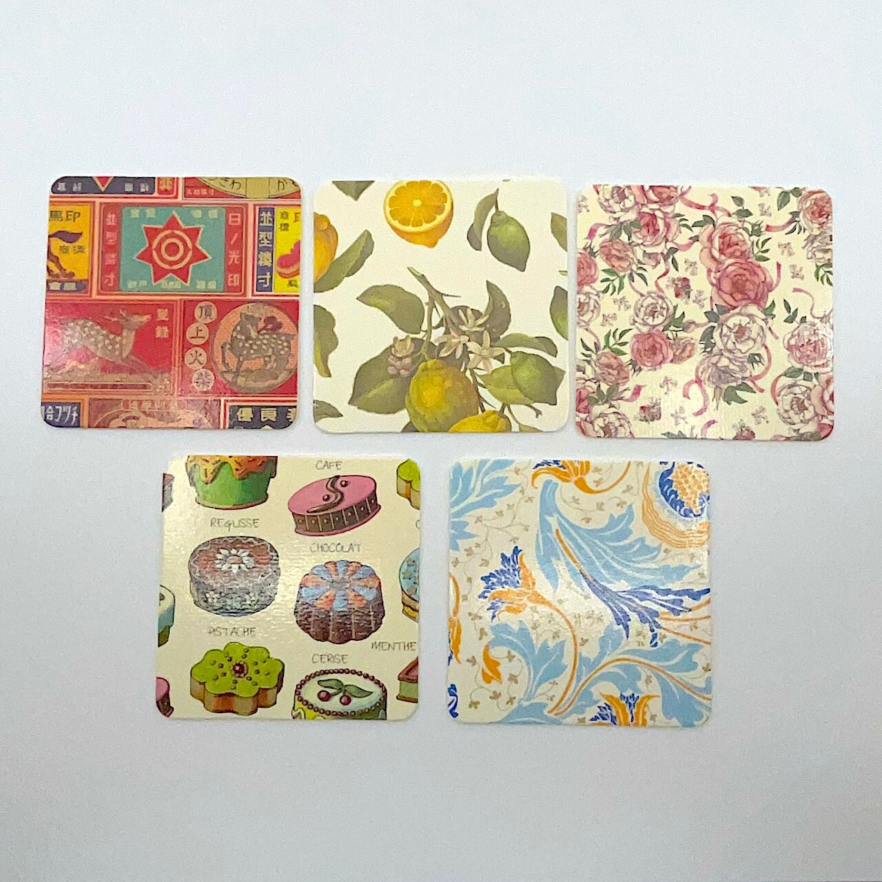 【パターン】Blue flower / Lemon / Sweets / Rose and ribbon / Vintage match boxes