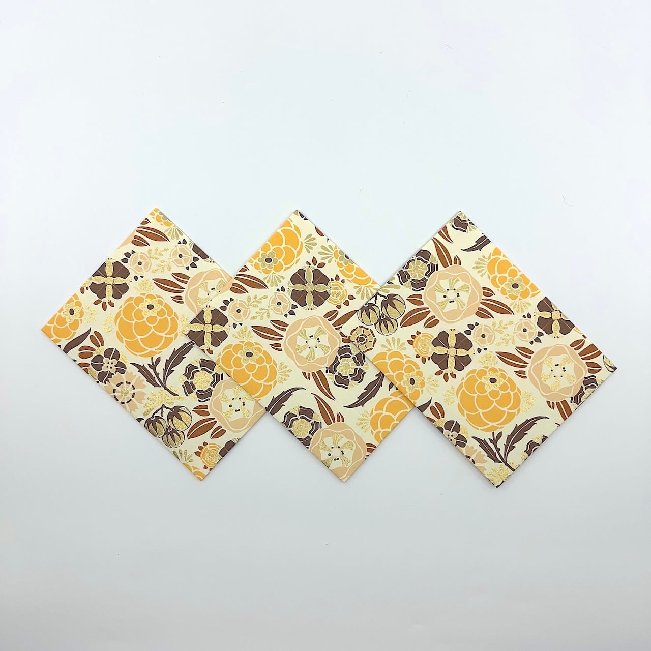 落ち着いたイエローとブラウンを基調にした花柄。あたたかみのあるトーンが心地よく、どんな空間にも穏やかに調和します。