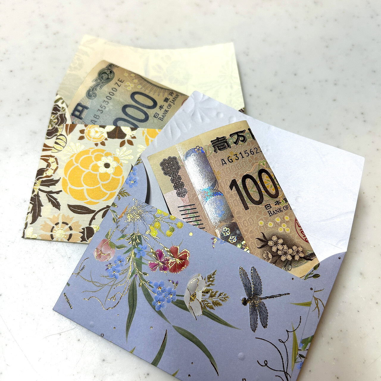 コンパクトで愛らしいサイズ感。 お年玉やお盆玉、車代としてのお心づけはもちろん、メッセージカードを添えてプレゼントに忍ばせるのにもちょうどいい大きさです。