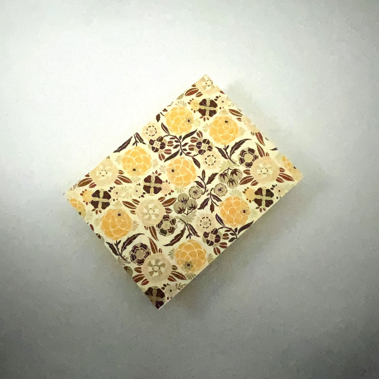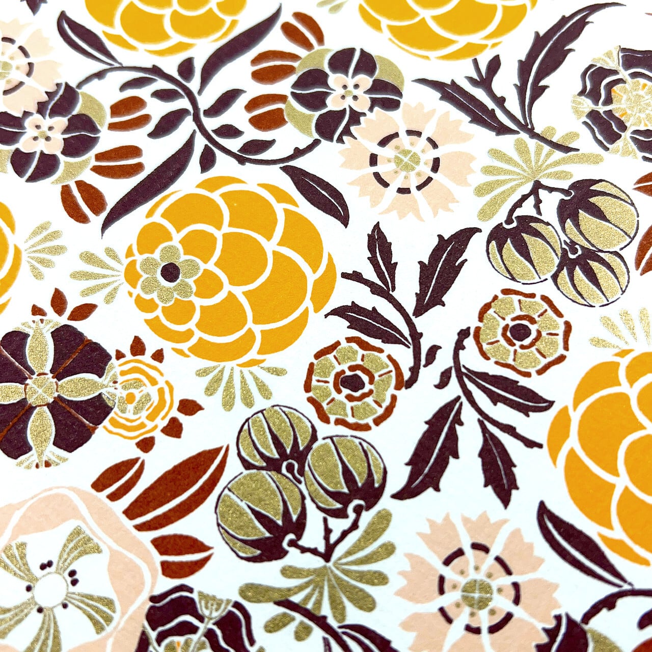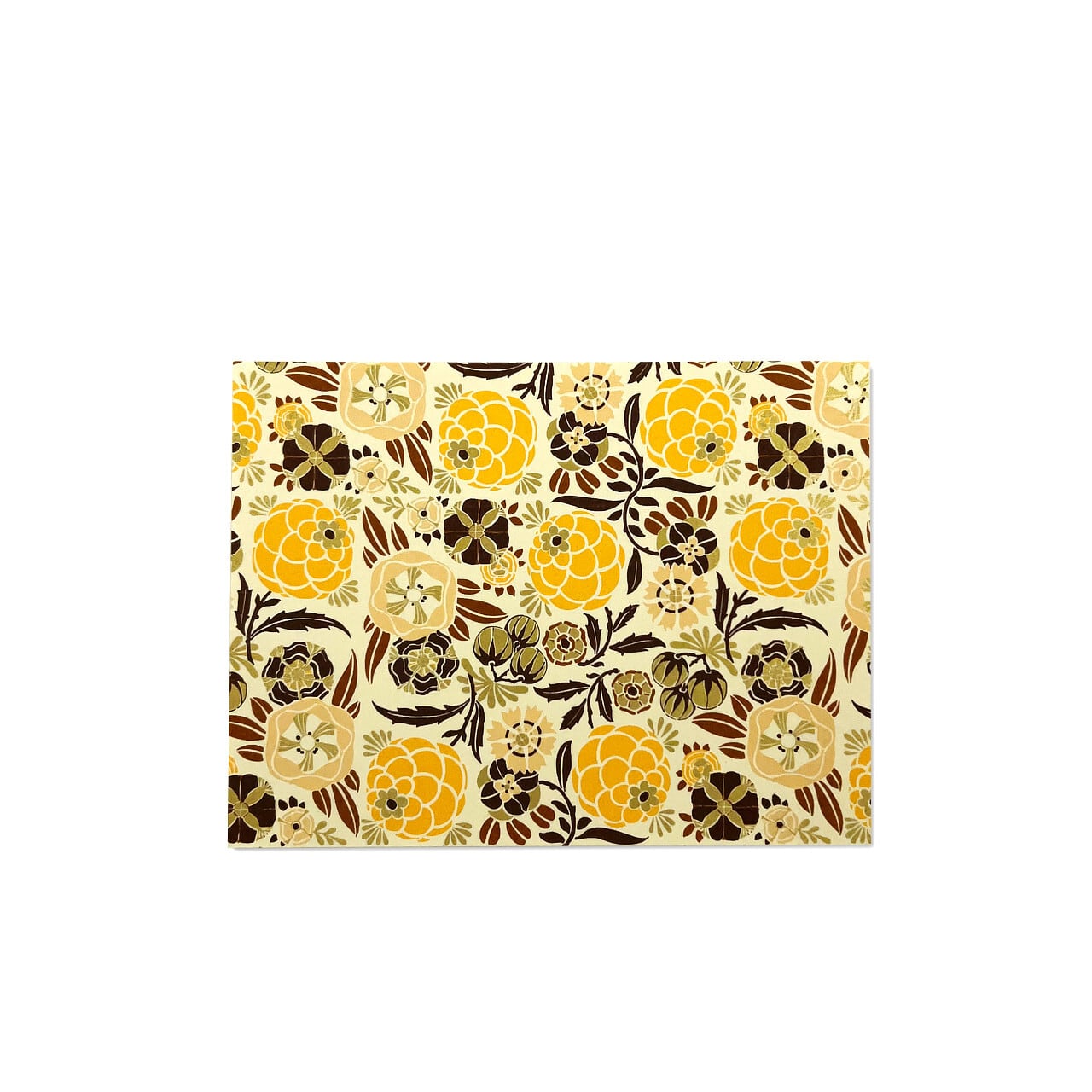 ベースのデザインペーパーはROSSI社製。落ち着いたイエローとブラウンを基調にした花柄。あたたかみのあるトーンが心地よく、どんな空間にも穏やかに調和します。