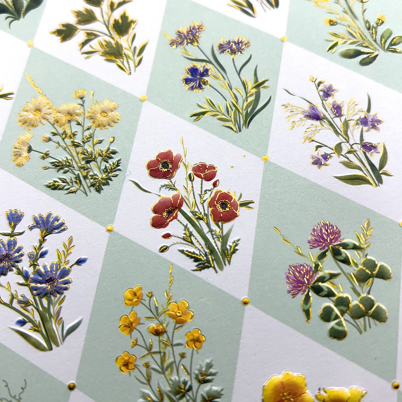 ベースのペーパーはデザイン集団のTURNOWSKY社。アーガイル柄を想起させるトラディショナルなデザインに数々の花が配置された、上品なアクセントを演出してくれます。