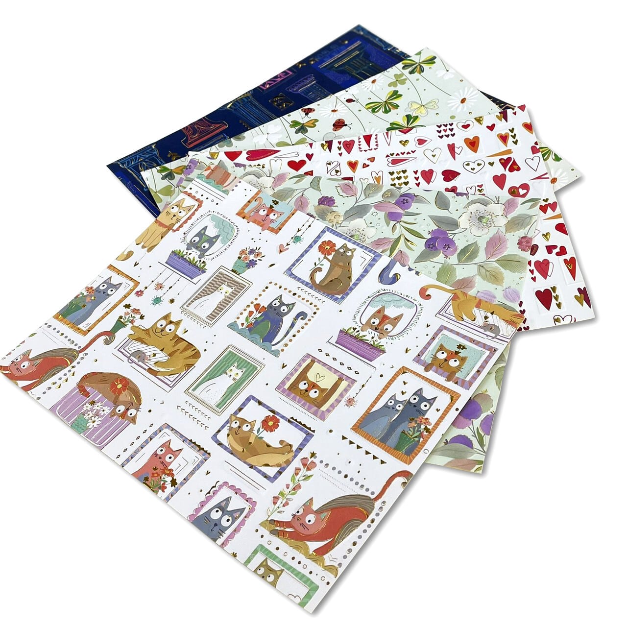 シートのまま貼るだけでなく、カットして細かく異なるデザインを組み合わせてコラージュのように仕上げたり、キュアパンチをはじめとするクラフトパンチで小さなワンポイントとして楽しんだり、装飾紙の持つ繊細なデザインが、手元で新たな表情を見せてくれます。